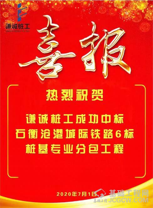 献礼当下 逐梦未来 ——谦诚桩工中标石衡沧港城际铁路站前6标桩基专业分包工程