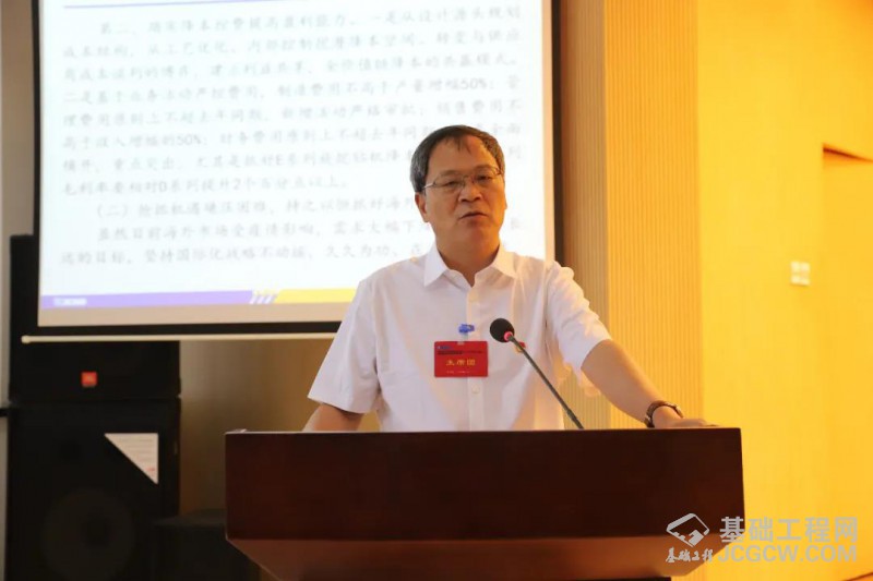 徐工基础总经理、党委书记孔庆华作题为《坚定扛起“三高一可”高质量发展的基础担当》行政报告