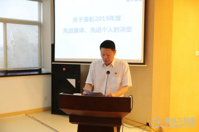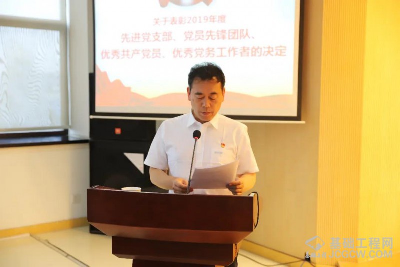 徐工基础副总经理张世伟宣读《关于表彰2019年度先进党支部、党员先锋团队、优秀共产党员、优秀党务工作者的决定》