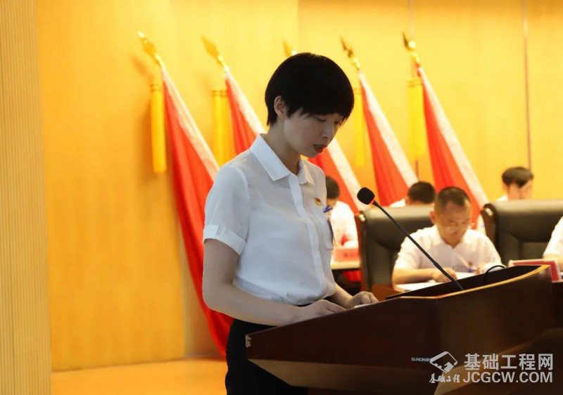 徐工基础党委副书记、纪委书记、工会主席刘佳佳作题为《汇聚创新力量 激发改革动能 全面夯实“三高一可”高质量发展基础》的党委工作报告