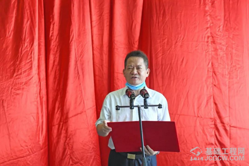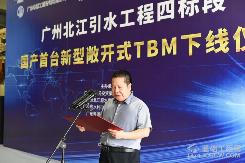 广州市水务投资集团有限公司总经理吴学伟、中铁十八局集团副总经理代敬辉、铁建重工党委书记、董事长刘飞香发表了热情洋溢的致辞。铁建重工技术总监刘绍宝主持仪式。广州市水务投资集团等各级领导、嘉宾与铁建重工职工共同见证设备下线。