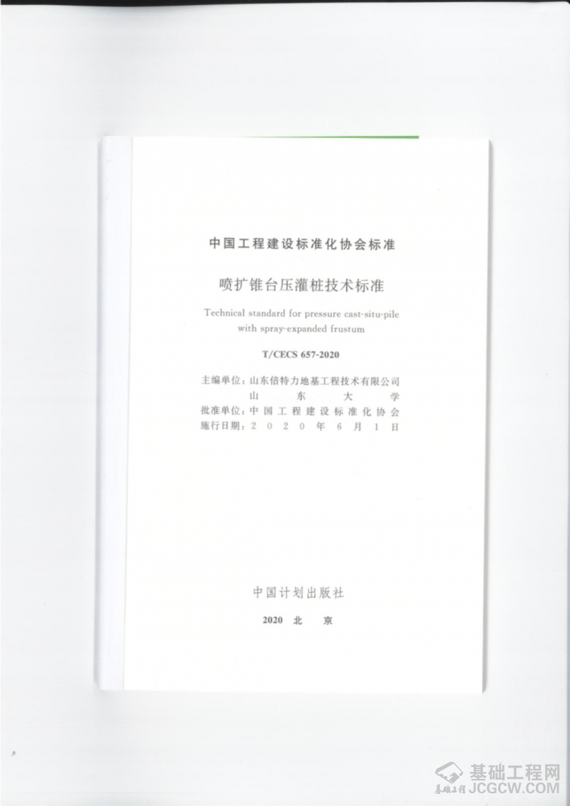 据了解,《喷扩锥台压灌桩技术标准》行业标准,历经2年多时间组织材料,编写内容,提交审核、研究讨论,审批通过,最终自2020年6 月1日开始在全国范围内实施。