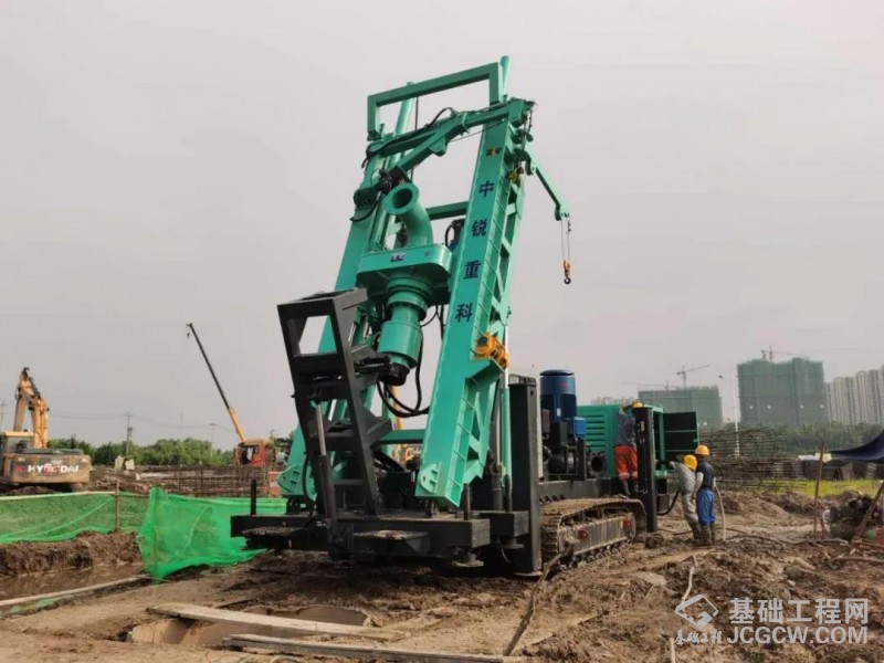ZJD系列履带式反循环凿岩钻机以其施工效率高、场地机动性好,操作维护安全简便,综合性价比极高等优点赢得了不少客户的青睐,该系列钻机最大钻孔直径为4m,最深深度为150m,可在硬度100mPa以内的岩石层施工,主要用于中大口径、大深度、复杂地层的桩基础施工,特别适用于砂、卵石及岩层施工。