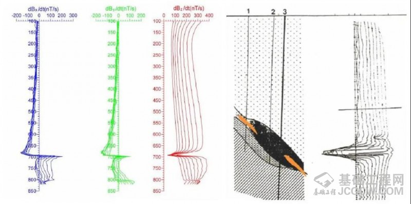 1、巷道发射和巷道及钻孔接收,形成三维观测系统;并可以逐渐远离一次场背景和逐渐接近异常地质体;