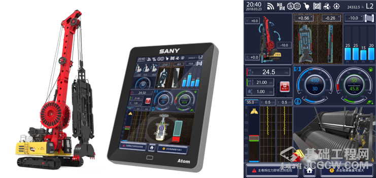 北京三一智造开发的抓斗专用操作系统,可以将抓斗垂直度进行曲线显示,并且可以动态显示关键参数,确保冲抓斗时刻保持垂直状态。该系统还具备施工管理、故障自诊断等功能,全力保障施工顺利、高效、快速的完成。