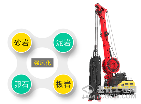 地下工程要面对地下地层的复杂性、突发性和不可视性。结合三一工法十五年的地质研究和积累,SH700的冲抓装置进行了反复演算和冲抓效率计算,在面对强风化、砂岩、泥岩、卵石等地层施工时,其冲击功增大10%,大幅度提高了硬岩层施工效率。