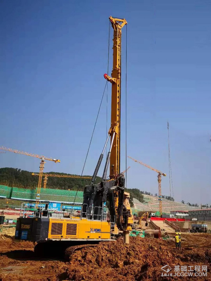 武嘉高速公路武汉标段,该项目主要是入中风化,桩径多是1.5米、1.8米,桩深40-60米不等,徐工XR360E凭借其强劲的入岩效果,自制地盘的稳定性以及双动臂的优势,实现了一天3-4根桩的高效率。