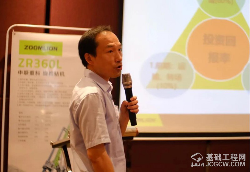 多年来,中联重科深入客户,潜心研究,推出了匠心铸造、绿色智造的全新4.0产品。上海中联重科桩工机械有限公司研发中心产品平台经理张方红就中联桩工产品家族的新成员向与会嘉宾进行了深度分享。公司在今年4月推出了“ZR360‘双子星‘”:ZR360L、ZR360C-3A;ZR360L在业内有着“280的功耗,360的工效”的美誉,它以油耗低、可靠性高的特点得到了用户认可;而ZR360C-3A号称“硬岩、深桩专家”,是匹配大扭矩、大加压力下的专注硬岩深桩的理想施工设备。