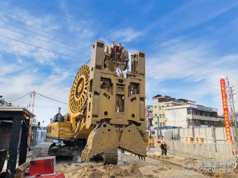 施工效率:采用徐工XG500E低净空抓斗(高9m)直接抓取成槽,单个槽段耗时约3-4h。