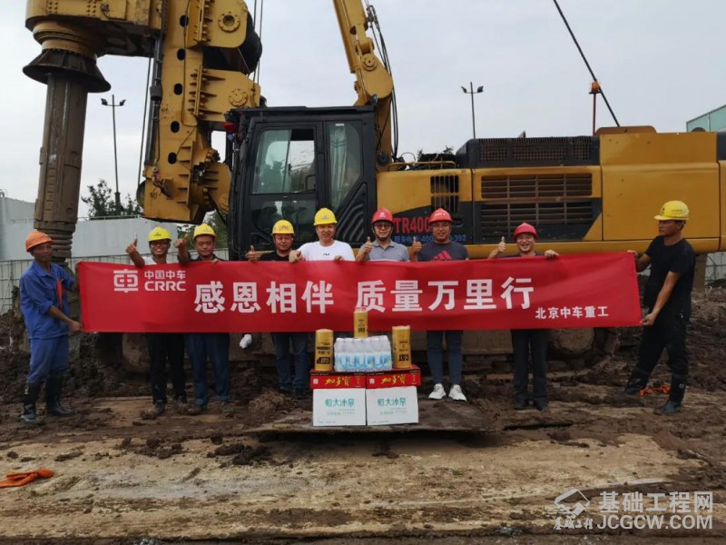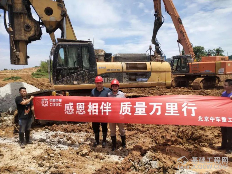 质量万里行,不舍昼夜。吴总带领的服务小组第六站来到了安徽宣城开发区新港商品房项目,桩径800mm-900mm,桩长15米~28米,中风化闪长岩,抗压强度50-70 MPa,强风化已达30MPa以上,基本用时1.5~2.5小时成孔效率很高。此台北京中车重工TR250D旋挖钻机自投入使用以来,工作米数已达到263000米,专门用于克服坚硬及疑难地层,在超深大直径、大范围入硬岩、穿越多层溶洞且垂直度要求极高的的工况下,充分展示了其超强的入岩能力和稳定可靠的技术性能;此外TR250D燃油消耗经济性高,运行成本方面独具优势,为客户创造价值。