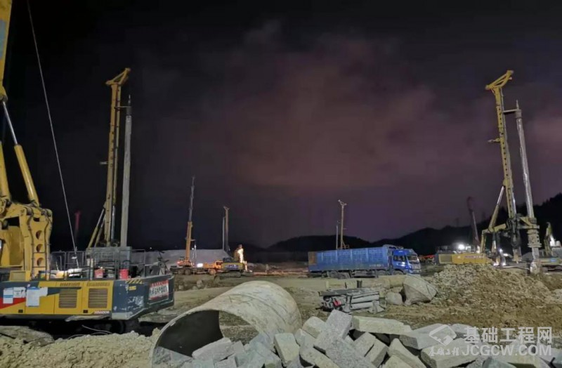 项目在广西的基础工程里具有很大的影响力,施工场地地质比较复杂,大部分都是石灰岩、斜岩、溶洞、片石,还需要用浓泥浆护壁,因为施工地比较狭窄、施工设备较多,导致泥浆比较难排。除此之外,项目组要求设备24小时施工,这对施工设备是一项很大的挑战。