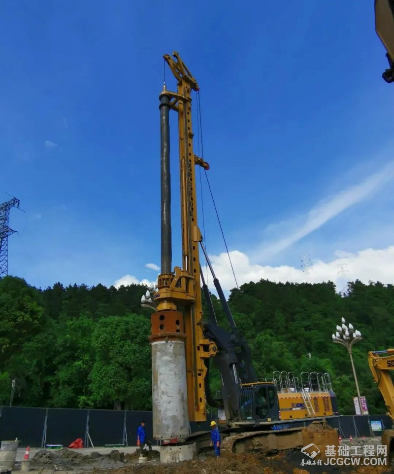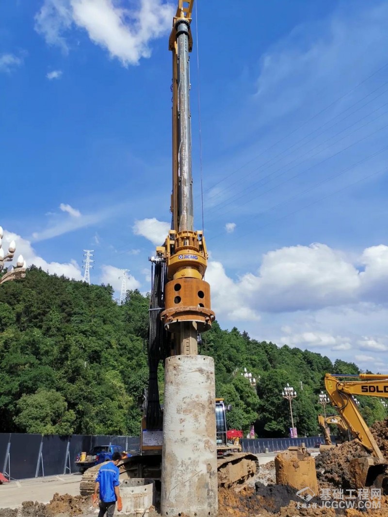 此项目共投放徐工XR360、XR400E型旋挖钻机10余台,值得一提的是,徐工新品XR380E在本次施工中得到应用,XR380E使用了康明斯电控涡轮增压发动机,动力强劲,成孔效率高,功率提升56KW,三动力马达配置,可靠性更强,寿命更高。以桩径1.5米,深度22米,护筒11米,2.5小时的效率完美交上“首秀”成绩。