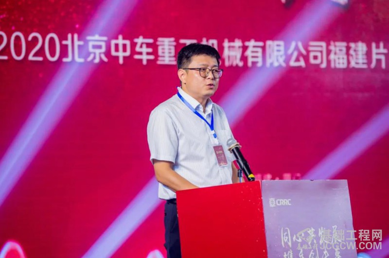 福建土木工程协会桩工分会会长韩寿文会长在致辞中表示:福建省旋挖市场有广泛的销售前景,据不完全统计,共有钻机680台,数量远远少于周边其他省份,中车重工是我国机械制造业的央企,特别是旋挖钻机的制造,其独有的特点,”卡特底盘”深受同行的青睐,这次在福建推出的H系列全电控旋挖钻机,以其节能、稳定性强的独特崭新产品,进入福建给我们的市场注入一股新的活力,值得同行的关注。