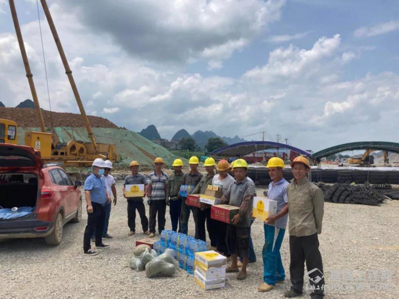同日下午,项目管理中心副总经理王大勇受谦诚桩工委托走访慰问贵南马山项目全体员工,听取项目生产情况汇报,关怀员工暑期身心健康,现场分发防暑降温用品,给一线员工送去了夏日的清凉与关怀。