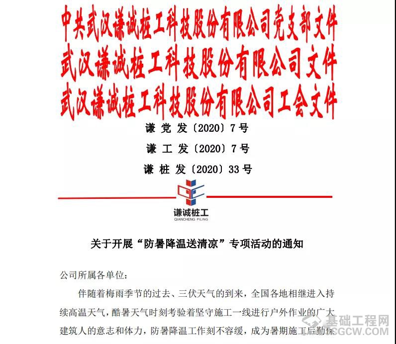 夏日炎炎送清凉 亲切关怀慰一线 ——谦诚桩工开展“防暑降温送清凉”专项活动