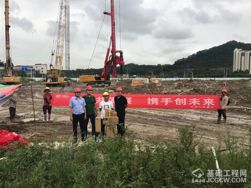 (北京中车重工TR368HW旋挖钻机第一根桩施工现场)