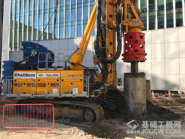 ndon Clay”,但由于这种设计需要考虑更多的因素(宝峨机械设备英国公司原本建议使用BG 55旋挖钻机)并且施工场地狭小,凯特布雷桩基公司对设计进行了调整,加深了桩的深度。钻孔采用聚合物泥浆护壁,桩底达到更深的森内特(Thanet)沙层中。
