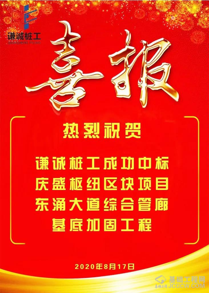 深耕市场 聚力突破 ——谦诚桩工成功中标庆盛枢纽区块项目东涌大道综合管廊基底加固工程