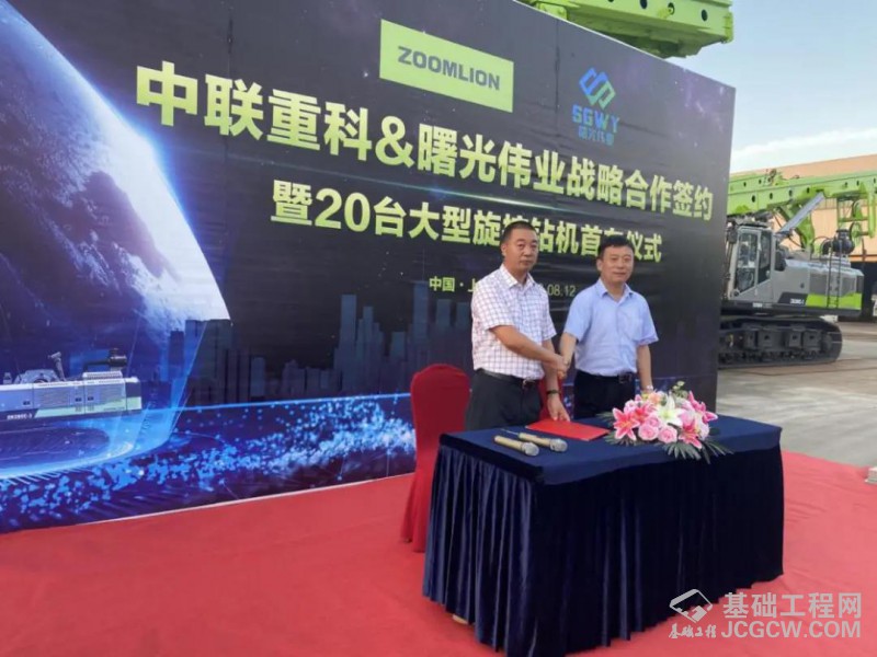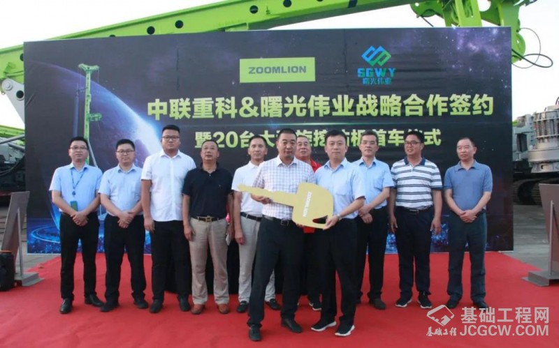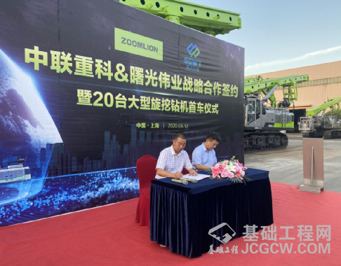 8月12日下午,上海中联重科桩工机械有限公司与厦门曙光伟业建设有限公司战略合作签约暨20台大型旋挖钻机首车仪式在中联重科上海松江工业园隆重举行。