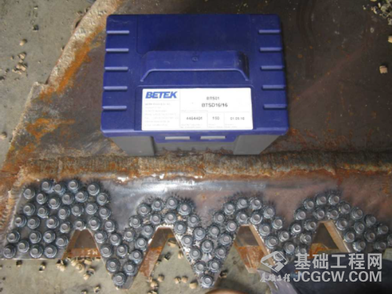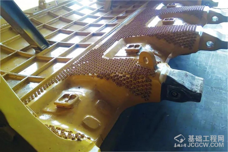 耐磨钉在液压挖斗上的使用报告为2011年2月,卡萨阁蓝地Casagrande桩工机械有限公司的液压挖斗上焊接了BETEK的耐磨钉,型号为BTS01。如下图所示,在挖斗的两侧安装了BETEK耐磨钉。