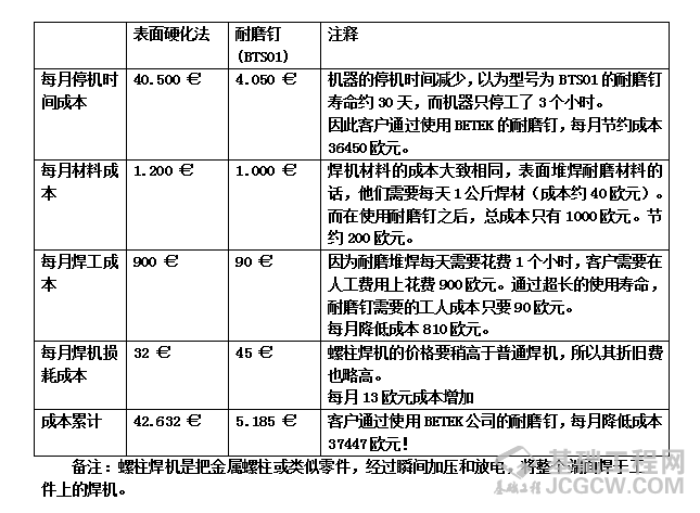 下方表格分析比较使用耐磨钉和全断面耐磨堆焊的不同!