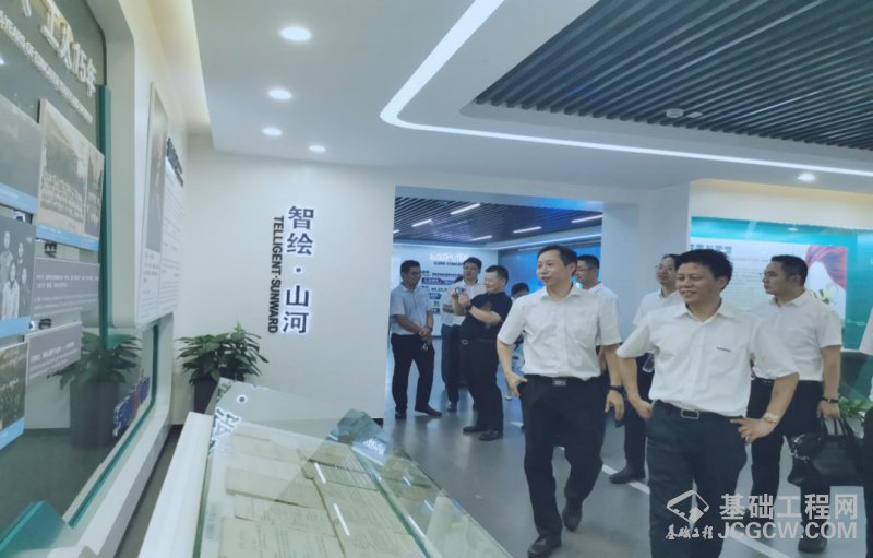 副总经理朱建新陪同谭明一行参观基础装备制造车间、盾构机制造车间、挖掘机制造车间,向客人详细介绍了山河智能在装备研发、装备制造方面的雄厚实力。在企业文化展厅,他详细地介绍了山河企业文化、发展历程。