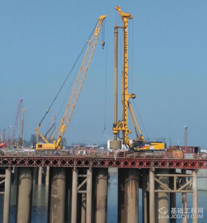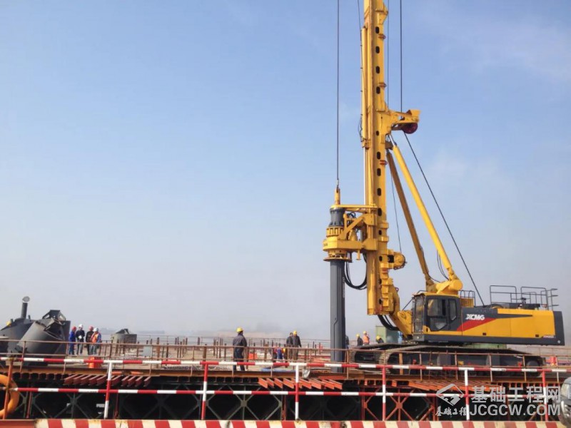 2020年5月,7台徐工XR550D助力汕头牛田洋特大桥桩基础施工,采用公轨共线设计的牛田洋特大桥,施工复杂程度堪称“世纪工程”,建成后有望开创国内桥梁建设新里程碑。徐工XR550D面对海底花岗岩的施工难度,仍达到133米桩深,助力塔墩桩基础施工工期提前一个月,为后续大桥建设奠定了稳固基础。