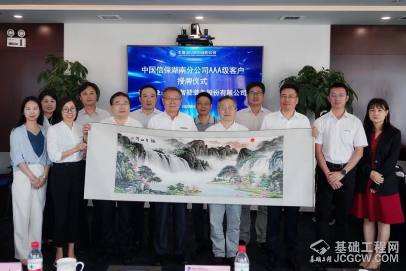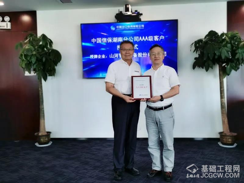 今年5月,中国信保授予山河智能AAA客户荣誉称号,在交流会上,中信保举行了简单而隆重的授牌仪式。