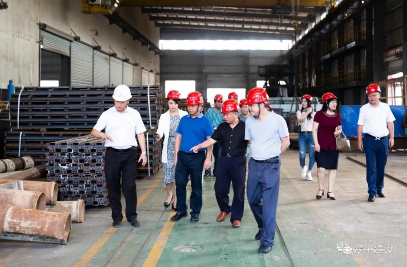 考察组一行来到晶海工程亭江工厂,在建中建设总裁何文林、晶海工程总经理助理喻宗文的陪同下,听取了关于建中建设自主生产、改造多种类产品及装备的相关情况,并与何总、喻总进行深入交流,现场了解全新H型钢、全钢附着式升降脚手架、旋挖机钻具、泥水平衡顶管机以及大口径土压平衡顶管机等产品的工作原理及其应用领域。