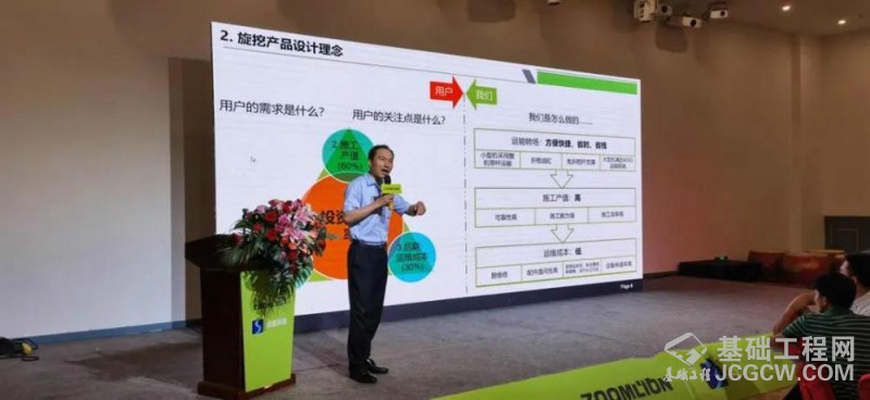 上海中联重科桩工机械有限公司研发中心产品平台经理张方红与在场嘉宾一同分享中联重科今年陆续推出的旋挖钻机“360双子星系列”——ZR360L、ZR360C-3A等数款新产品。