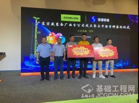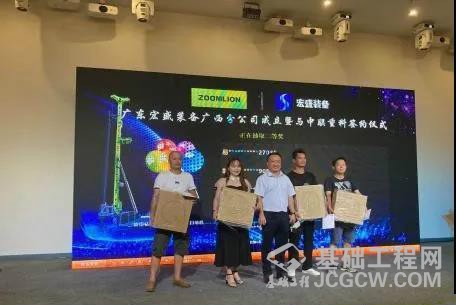 在签约仪式中,广东宏盛工程装备有限公司广西分公司总经理刘朝晖与上海中联重科桩工机械有限公司营销公司广西分公司经理谷懋共同完成了本次旋挖钻机批量采购签约仪式。