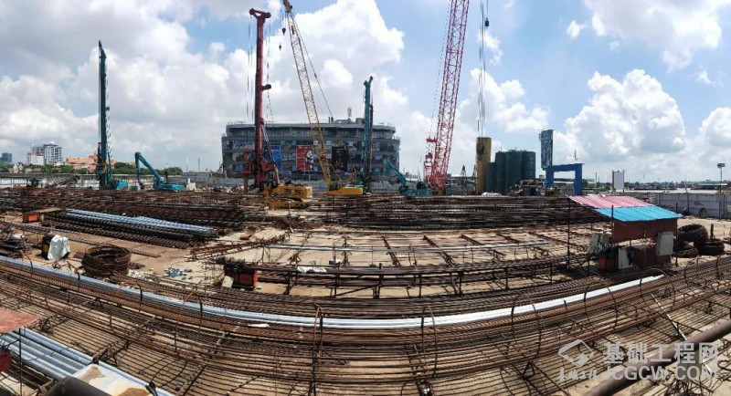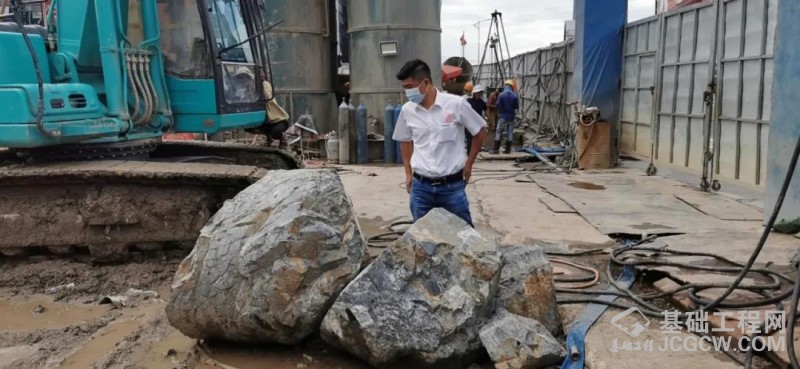 柬埔寨钻石岛MESONG金汇项目的桩基础施工,其难度之高在柬埔寨是大家所公认的。工地共有189根直径1.5米孔深73米-75米的主桩,平均入岩深度35米。该项目地质条件极为复杂,分为七个地质结构层,分别为回填土-粉砂、粘土-粘土、粉质粘土-粉砂-粘土全风化-强风化(6.5Mpa)-中分化(23Mpa)-微风化(40Mpa),其中微风化岩层达到了20米,对旋挖钻机的性能具有极大挑战性。