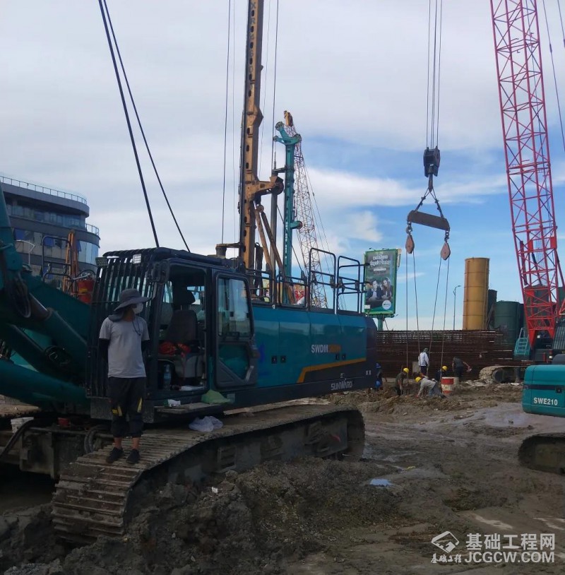 CITY KEY公司是柬埔寨在桩基础施工领域的一家老牌企业,凭借强大的实力和专业能力,多次承接柬埔寨大型桩基础施工项目。钻石岛MESONG金汇项目的桩基础施工自今年二月开工以来,即使是CITY KEY公司也面临着极大压力。该公司进入项目施工的设备共有4台,其中2台是山河智能的SWDM360H。由于地质条件复杂,CITY KEY公司的2台其他品牌的旋挖钻机在施工过程中的表现不尽如人意,一台360R由于成孔速度慢(一个星期成一孔)已被闲置在工地,一台460也因入岩能力差而离场,2台山河智能SWDM360H以22-26小时成孔一桩的表现成为了项目施工的绝对主力。用客户机手的话说,那就是“山河智能旋挖钻机动力足、扭矩大、稳定性好!”