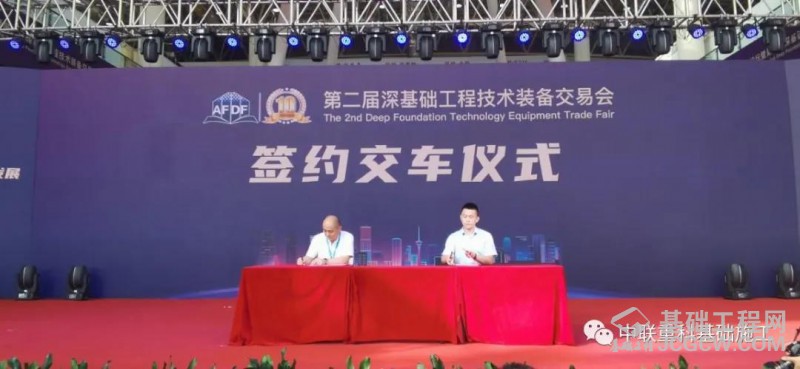 核心提示:中联重科基础施工在第十届深基础工程发展论坛暨第二届深基础工程技术装备交易会会场分别与山东鲁岩基础工程有限公司、山东华亿基建工程有限公司、山西星睿岩土科技有限公司、裕祥建设工程股份有限公司签订了设备采购协议并举行现场签约交车仪式。