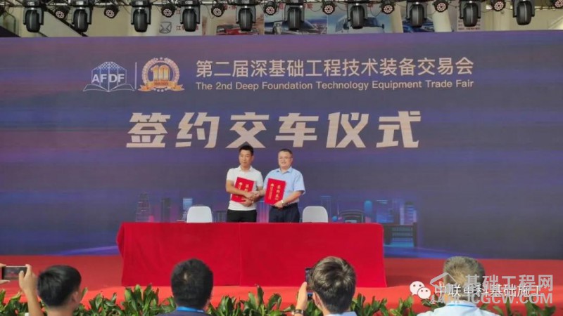 本届展会,除了会议主办方筹备的各类精彩活动,中联重科基础施工在会场分别与山东鲁岩基础工程有限公司、山东华亿基建工程有限公司、山西星睿岩土科技有限公司、裕祥建设工程股份有限公司签订了设备采购协议并举行现场签约交车仪式。