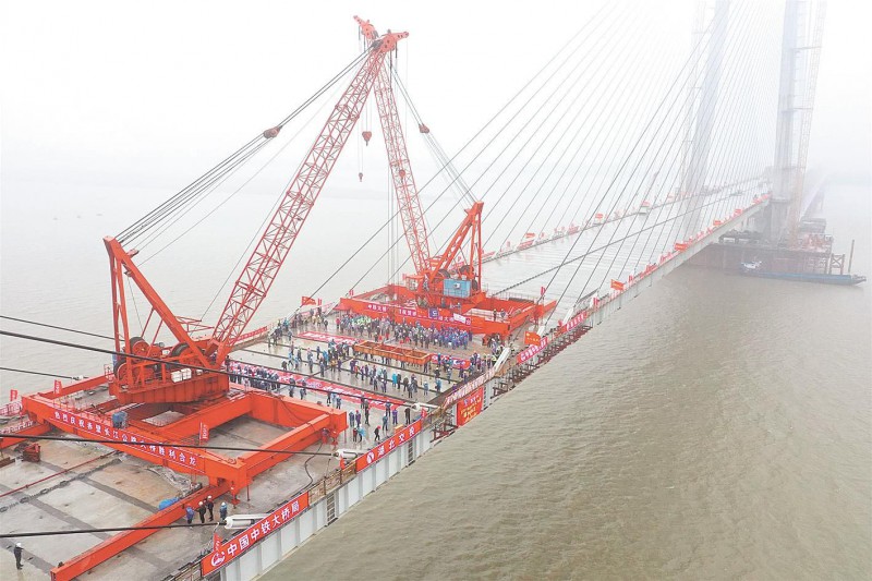16日上午11时18分,随着最后一节钢混梁吊装到位,世界跨度最大的钢混结合梁斜拉桥——赤壁长江公路大桥成功合龙。该桥由湖北交投集团投资建设、中铁大桥局施工,预计今年七一前夕建成具备通车条件。届时,从咸宁赤壁到荆州洪湖,仅需5分钟,将助推长江中游城市群一体化发展,助力湖北“建成支点、走在前列、谱写新篇”。