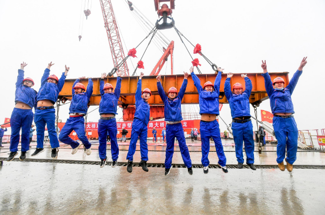 赤壁长江大桥自2018年3月开工建设以来,经历了特大洪水、新冠肺炎疫情叠加影响。湖北交投集团奋力担当、逆势前行,全体参建者迎难而上、克难攻坚,确保了项目建设优质高效推进。