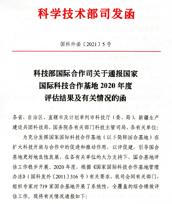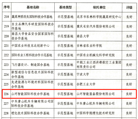 近日,国家科技部发布《关于通报国家国际科技合作基地2020年度评估结果及有关情况的函》,山河智能国际科技合作基地获评“良好”。