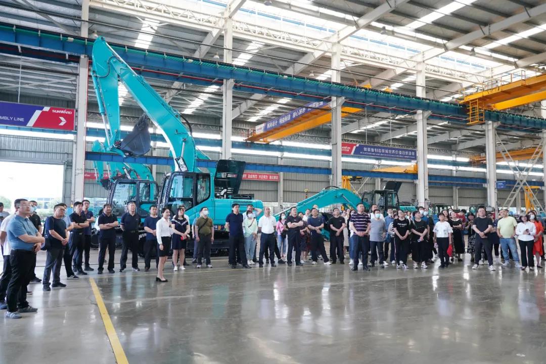 随后,王志云一行来到挖掘机装配车间,重走习近平总书记考察山河智能之路,并在现场重温总书记考察的重要讲话精神。在实地参观了解山河智能挖掘机装配生产线,亲眼见证液压安装、行走马达安装、发动机吊装等装配环节后,大家纷纷对山河智能生产车间的智能化水平表示肯定。