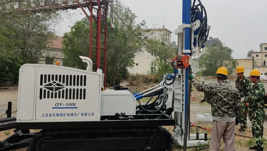 3、安装专用破岩钻具,对厂区表层黏土砖进行破岩