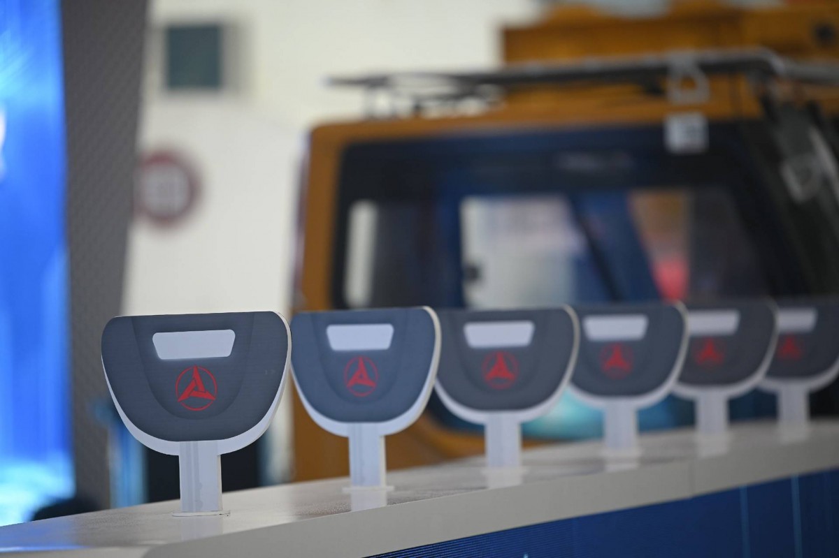 内场,由16台混凝土机械、13台路面机械组成的机械兵团同样看点十足。采用三一自制底盘的鸿运版全法规C10泵车,已在华南、华东等地大规模实用的新型无人电动搅拌车、无人压路机、无人摊铺机等均首次亮相长沙展,产品前围满了想来一探究竟的热情观众。