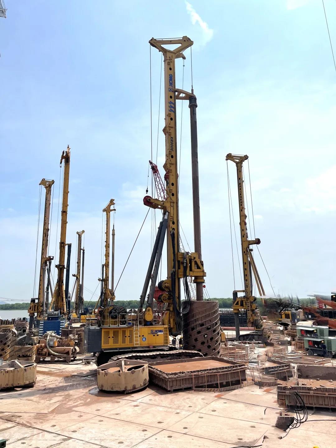 让这座世界级跨江工程能够常立于风雨之中,项目组也是在设备应援上下了“大”功夫!全球最大吨位旋挖钻机徐工XR800E、全球最大钻深旋挖钻机徐工XR700E首次联合出场,开钻直径4m的超大孔桩,提速超级工程。