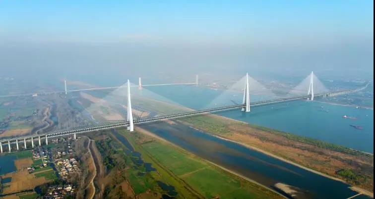 飞虹再越皖江,马鞍山长江公铁大桥创同类桥多项世界之最:主墩总高345m,相当于115层楼高,为世界最高桥塔;主墩桩基础采用60根直径4m的钻孔桩,是世界上内河最多和最大直径钻孔桩。