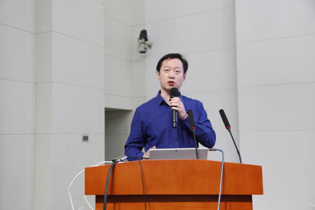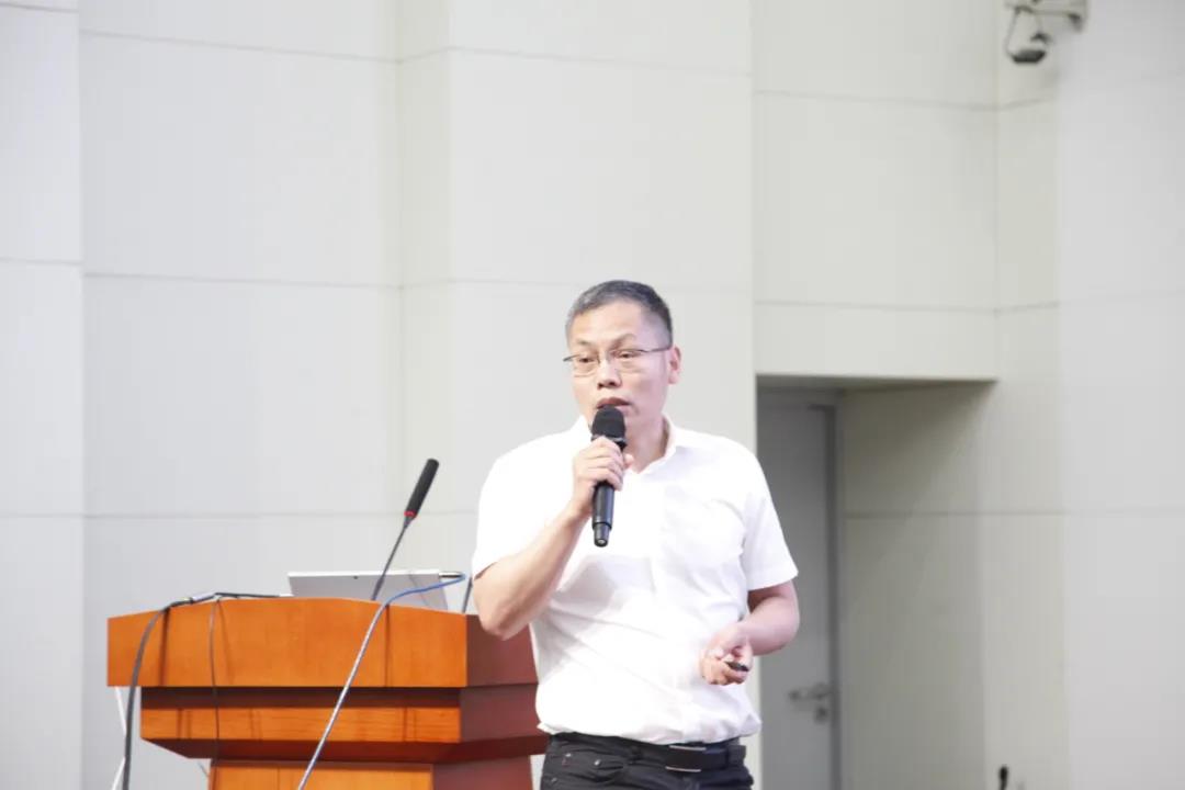 ▲上海工程机械厂有限公司总经理助理王汉宝做《等厚度水泥土搅拌墙工法与设备介绍》报告