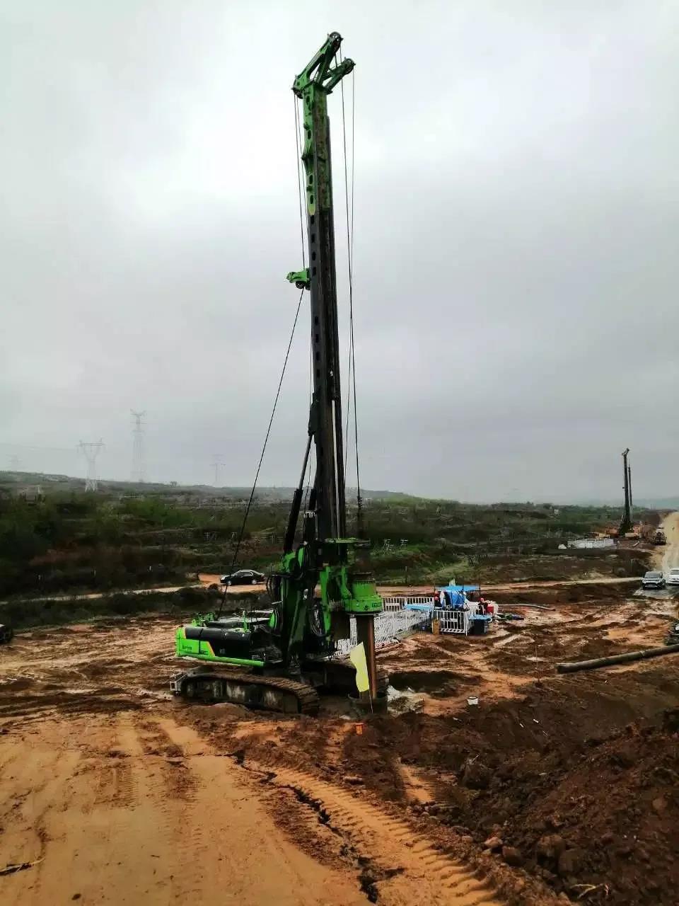 在山东省烟台市,泰信机械高端卡特底盘KR300C旋挖钻机参与施工中铁一局潍烟高铁ZQSG-4标段建设。泰信KR300C钻进区域最硬岩层为弱风化花岗岩,硬度达1700Kpa+。泰信施工团队克服工地水电无法供应、野外作业条件受限、岩层硬度极高的困难,采用泥浆成孔,通过一清、二清保证孔底沉渣控制在5公分内,同时狠抓安全文明施工,确保高质量、高效率、高安全完成桩基础施工。