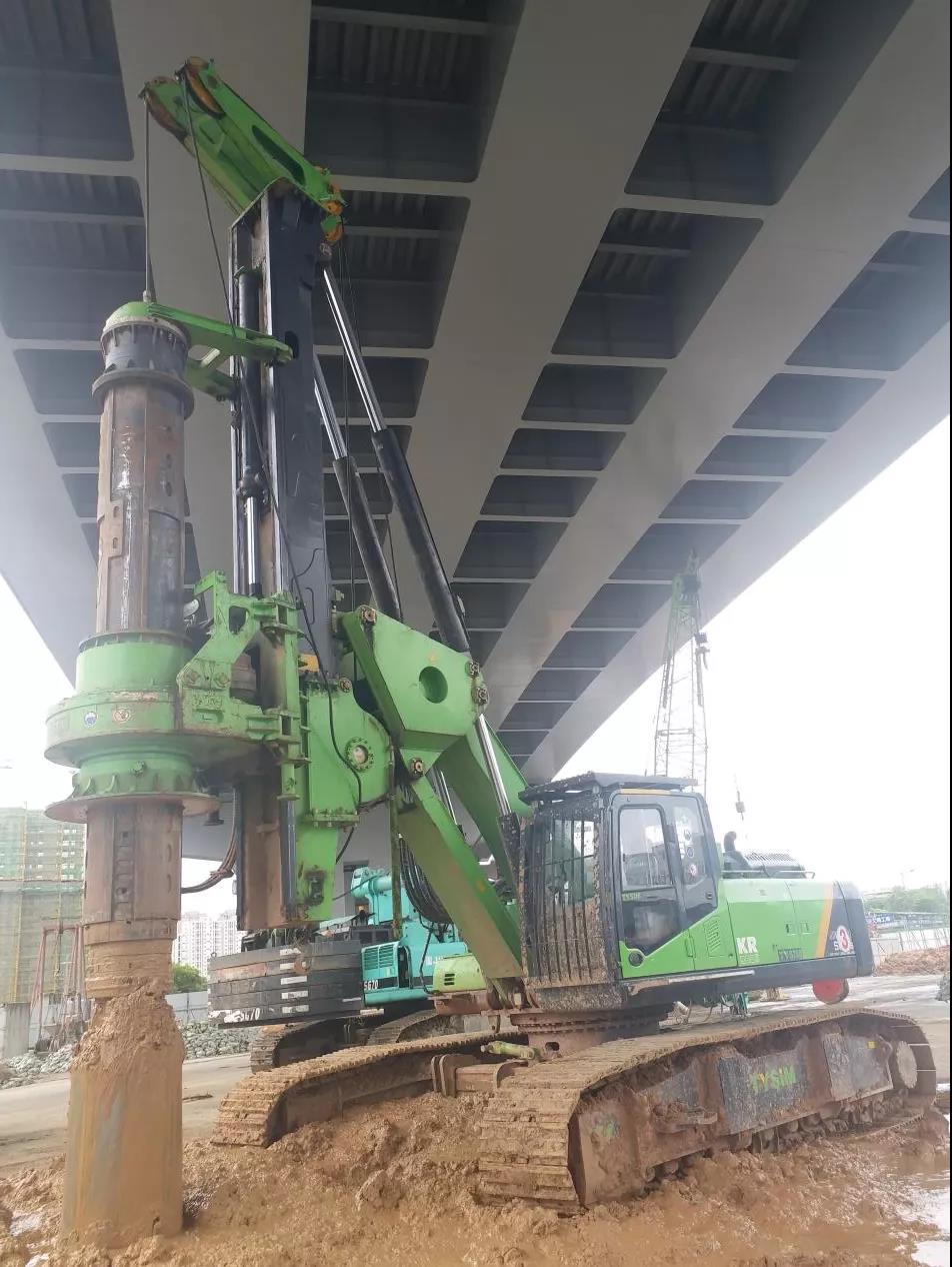 在浙江省杭州市,泰信机械KR300ES低净空旋挖钻机参与了杭州文一西路(东西大道-荆长大道)提升改造工程。应客户的不同需求,针对在建筑物与大型隧道内、桥梁与高压线下等环境中施工的工况,泰信机械研发部快速反应,制定了针对性较强的技术方案,自主研发推出了特殊机型KR300ES低净空旋挖钻机,兼顾低的施工高度和超深的施工深度条件下,完成大口径入岩施工。