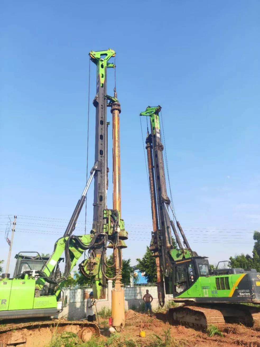 在广东省清远市,泰信机械多型号旋挖钻机助力投资500亿的广清产业园基础建设。工程承建商肇庆市兴业建筑工程公司调用泰信KR125A、KR90A型号旋挖钻机入场作业。兴业建筑早期使用同庆机、山东机完成资本积累,在产品升级时,采购了泰信KR125A作为主力设备作业,并表示在与某主流品牌160机型同场竞技中,KR125A施工效率更高,油耗更低,性价比完胜对方,未来采购设备时,将继续选择泰信!