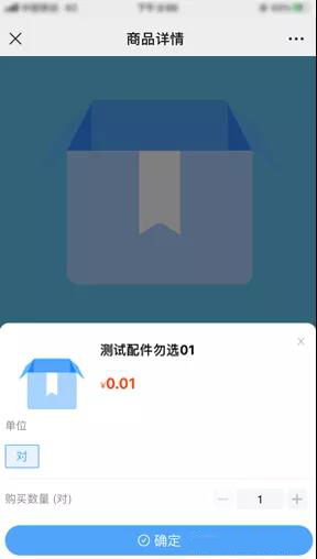 点击所需购买的配件,进入商品详情页。点击“加入购物车”,填写所需购买的数量后,点击确定。