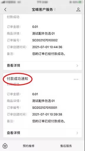 完成支付后,可以在微信公众号中收到“付款成功通知”。未完成付款的订单,可以在“个人中心”的“待支付”订单中找到,并可以继续进行支付。