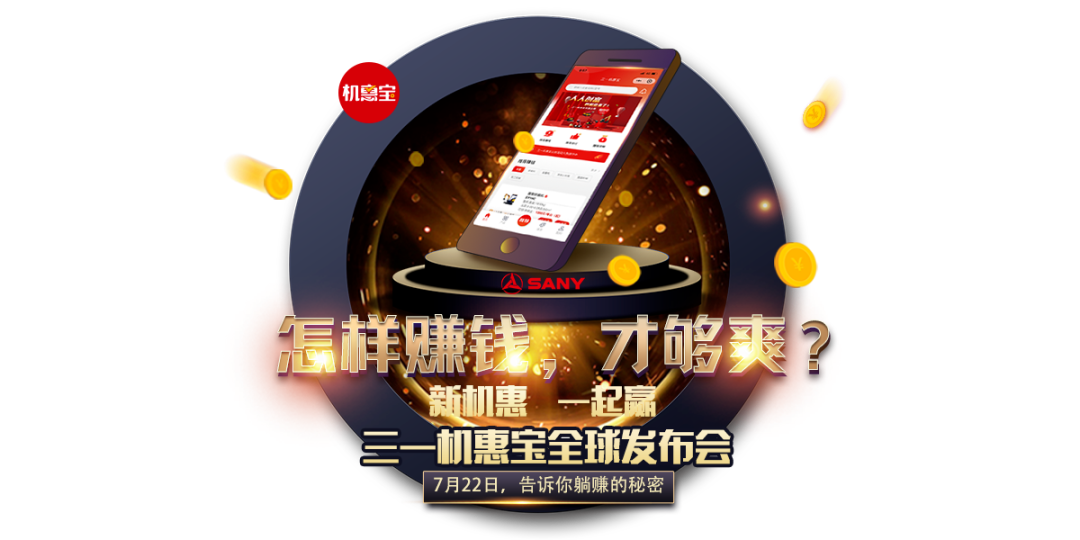 在7月22日发布会上,平台创始人将多维度深度解读三一机惠宝和它背后的故事,和大家一起聊聊赚钱的事儿,与广大用户一起发现新机“惠”,共赢新“钱”途。